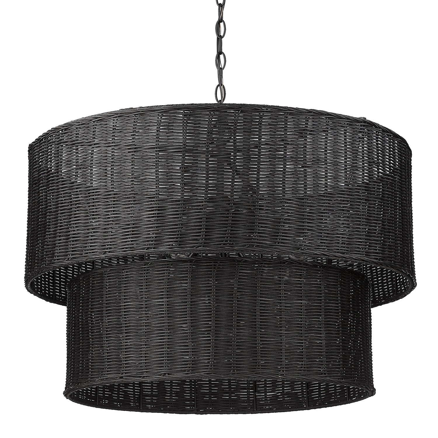 Erma 9 Light Chandelier in Matte Black and Black Wicker