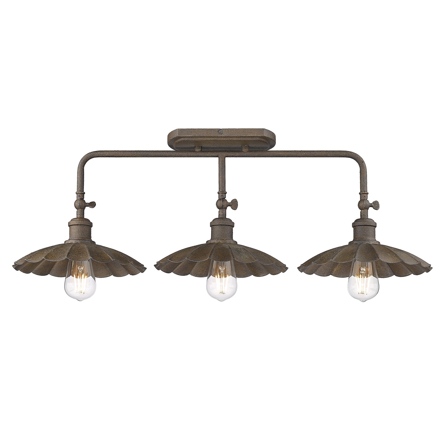 Delicate in look and sturdy in construction, Clemence is a collection of beautiful vintage-inspired fixtures. The lights are perfect for adding understated glamour to rustic or refined spaces. The multi-layered Dark Rust finish and scalloped metal shades add the old-fashioned charm needed for a cottage or farmhouse look. Clear glass allows for widespread illumination.
