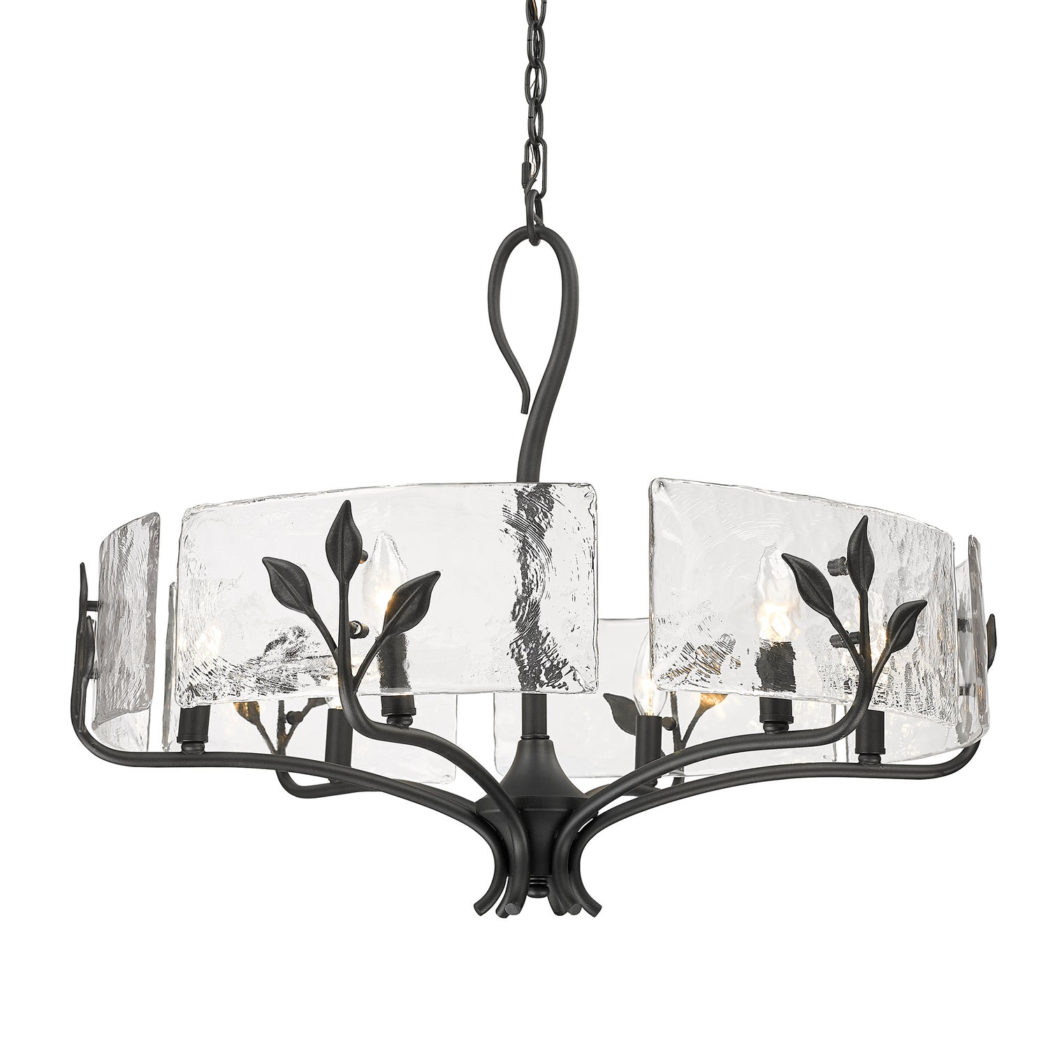 Tastefully convey your love of nature with the beautiful Calla Collection. Decorative elements like Hammered Water Glass and plant-like metal details take center stage in the transitional design. Choose between contemporary Natural Black or sophisticated White Gold.