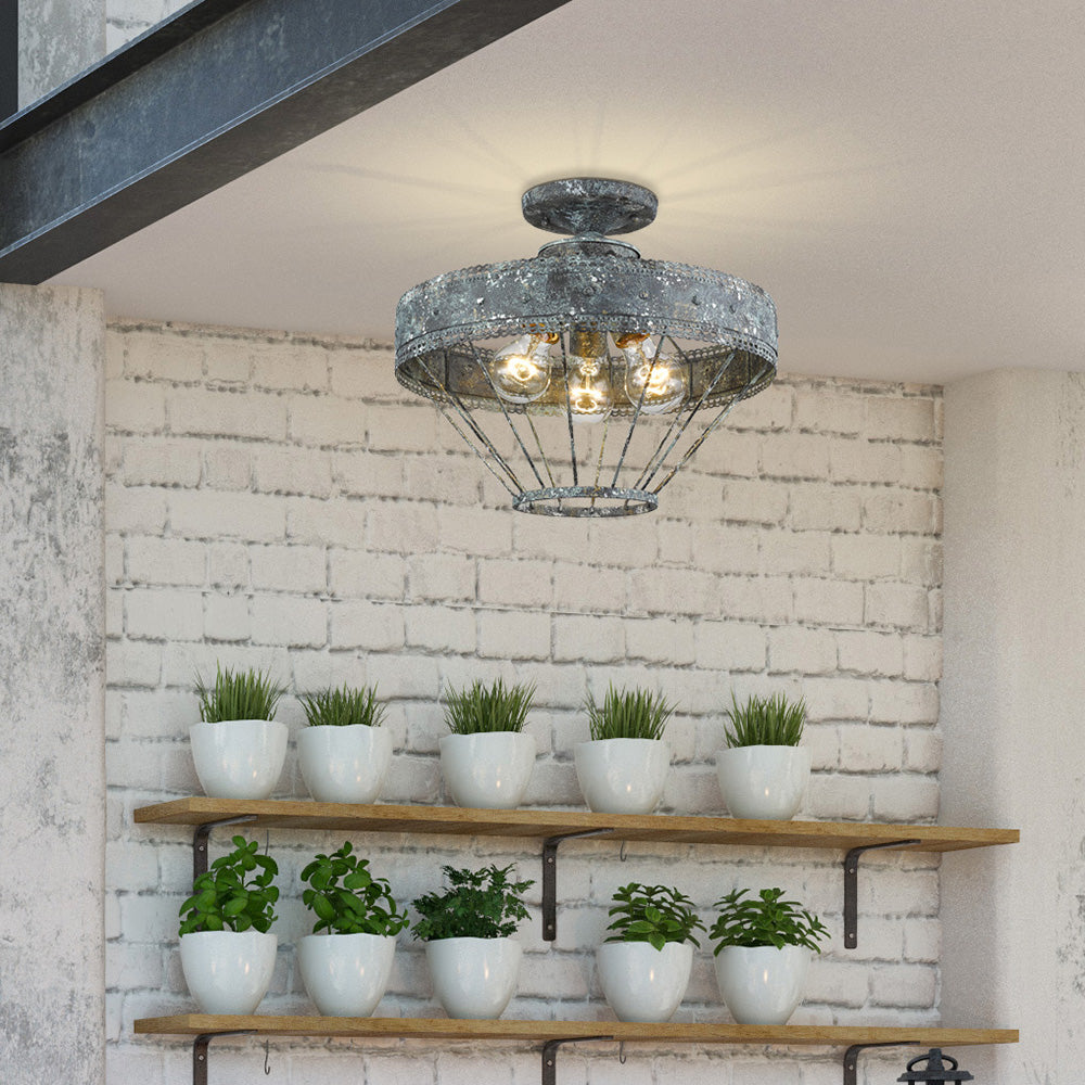 Ferris is a casual, vintage-inspired design that was created for eclectic or farmhouse decors. The unique metal work features a scallop detail and a multi-layered, hand-painted finish. Available in two rustic patina finishes which create a chic, but weathered look. This semi-flush creates a generous open area for widespread ambient lighting.