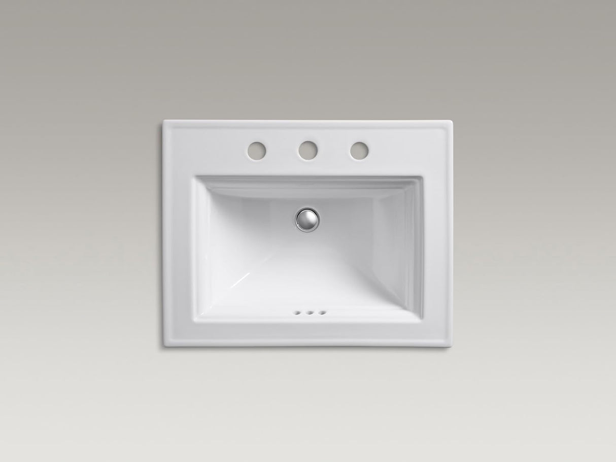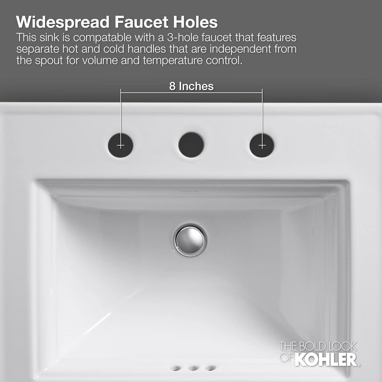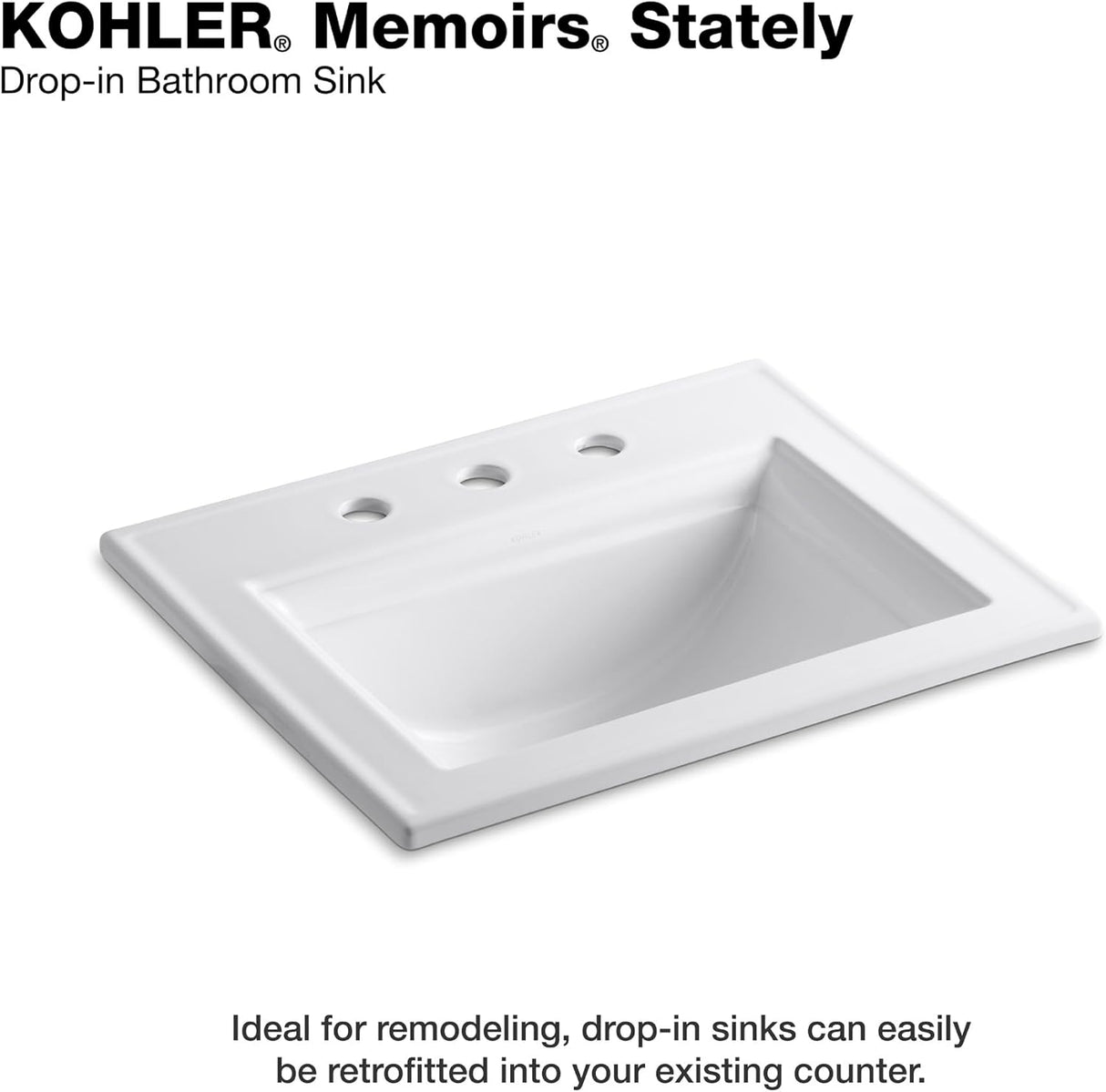 KOHLER K-2337-8-17 Memoirs Stately Rectanglar Drop in Bathroom Sink, 22 3/4", White