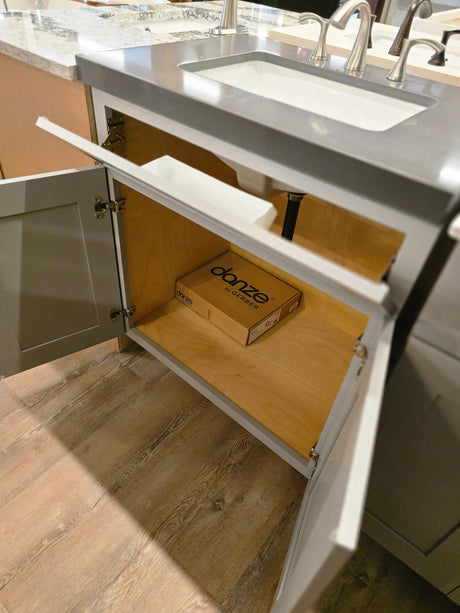 Sale price $1,20000 Regular price $3,42145Unavailable30" Cab-Tec White Vanity Set with Grey Fairmont Quartz Top and Danze Bru...