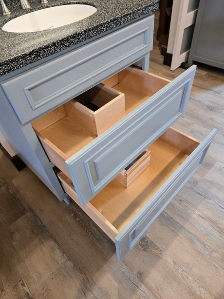 ✅ Ready for Pick Up!Sale price $90000 Regular price $99900Unavailable30" Cab-Tec Caramel Shaker Vanity Set with Fairmont Egg Quartz Top and ...