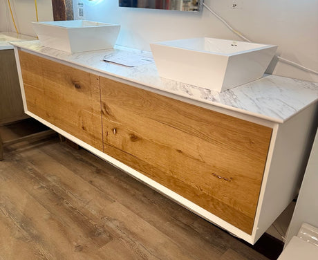✅ Ready for Pick Up!Sale price $1,10000 Regular price $1,49386Unavailable72" Modern Sleek Wall-Mount Vanity Set with White Vanity Top and Two Sol...