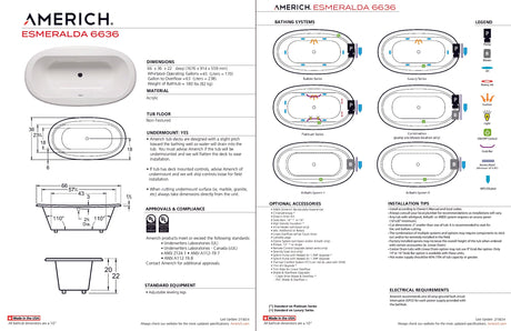 Regular price $6,52500UnavailableAmerich ES6636PA5-BI Esmeralda 6636 - Platinum Series / Airbath 5 Combo - Bis...