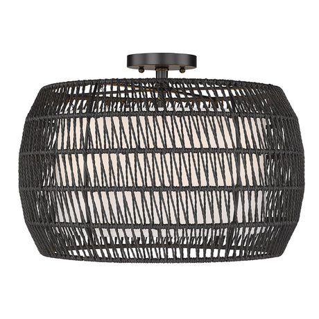 Regular price $23999UnavailableIn stock online (27 Units)Erma 3 Light Semi-Flush in Matte Black with Black Wicker Shade