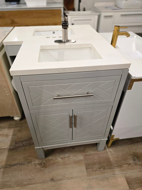 24" Kohler Pale Grey Contemporary Vanity Set with Brushed Nickel Waterfa...