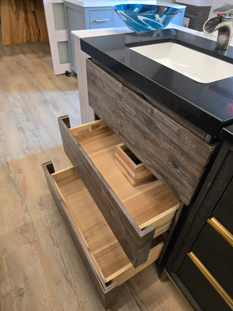 ✅ Ready for Pick Up!Sale price $40000 Regular price $79100Unavailable30" Dark, Natural Wood Vanity Set with Black Granite Top and Brushed Nic...