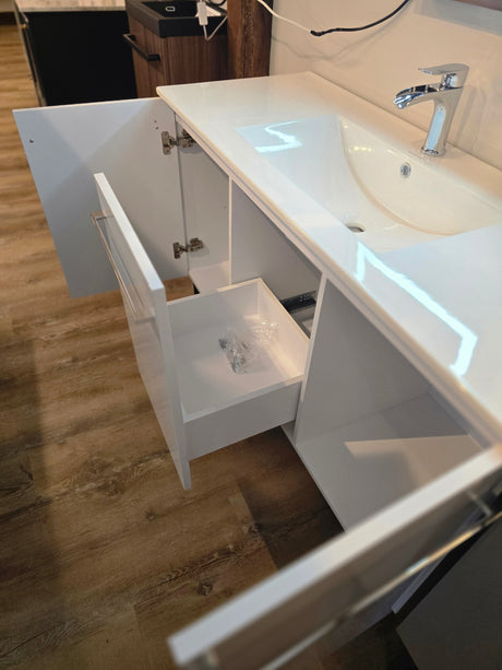 ✅ Ready for Pick Up!Sale price $50000 Regular price $54898Unavailable48" Annecy Bathroom Vanity White Finish, Sink Top + Chrome Waterfall F...